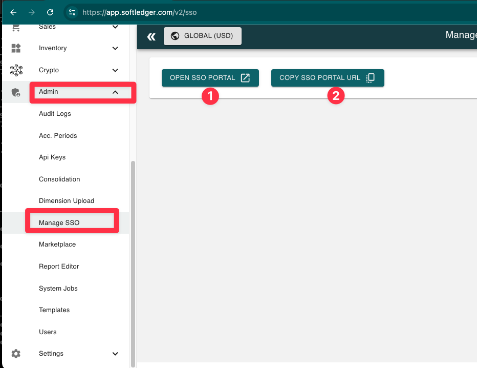 A SoftLedger User who has access to your SSO IDP can login to SoftLedger, navigate to Admin>Manage SSO and access the portal by the clicking "Open SSO Portal" button